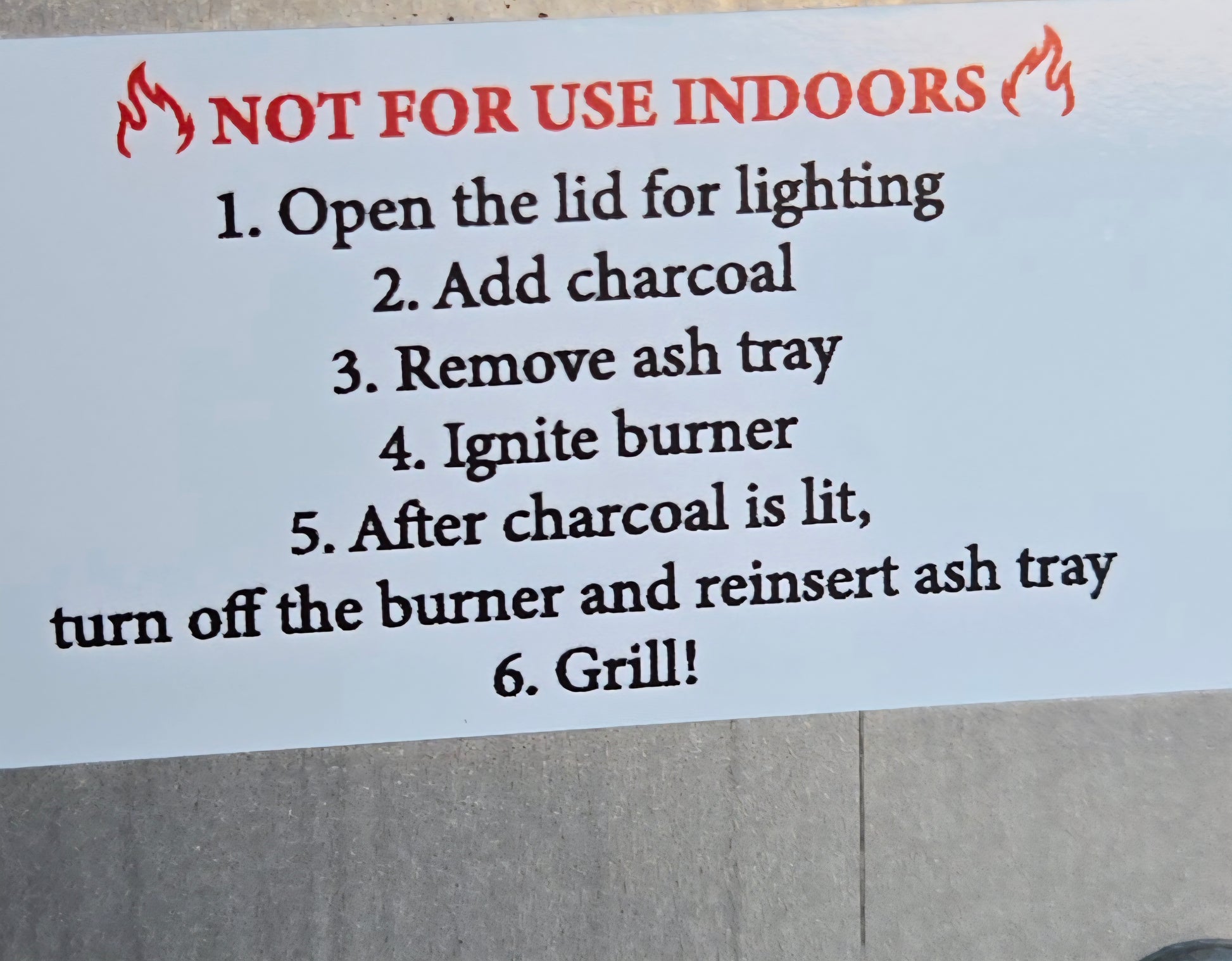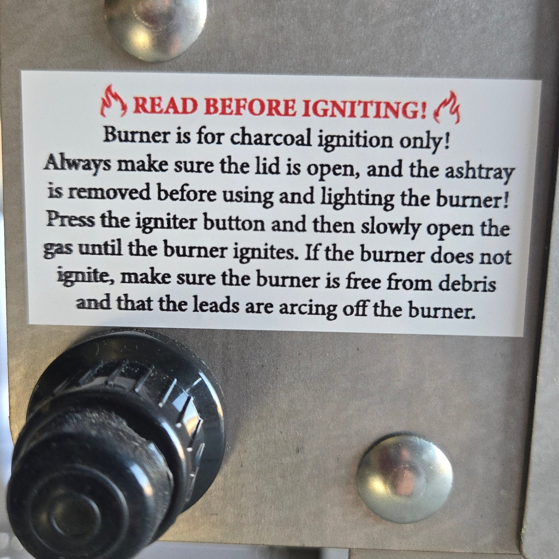| Fuel Type – Cooking | Charcoal briquettes or lump charcoal |